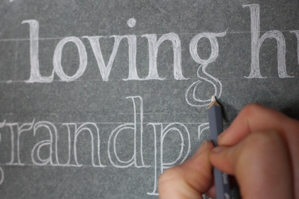 Granite makes up the bulk of the memorials we see in cemeteries today. The majority of these will have been machine cut and designed using monumental masons computer software, with the unfortunate result that they all look remarkably similar. Most clients come to lettercutters like us because they would like something that looks very different to these! There is no denying of course that granite is highly durable, but this also means that it is rarely hand cut (I don't carve granite!) On rare occasions I will take on a granite job but I will design the lettering myself (it will still be sandblasted) and endeavour to make it as unique as I can.