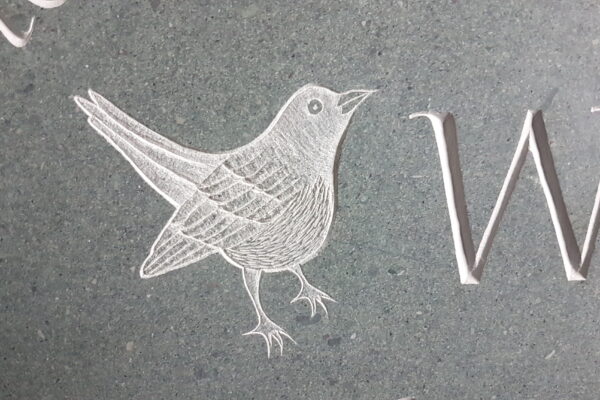 There is a wide array of both Scottish and UK sandstones suitable for carving. With sandstone it is important to choose one which is fine grained and thus holds fine detail. I tend to leave sandstone lettering unpainted, so will carve deep and design slightly bolder letters to stand out better. They range in colour from red sandstones like Corsehill and St Bees, through to grey/buff and creamier stones. A particular favourite of mine is York stone.